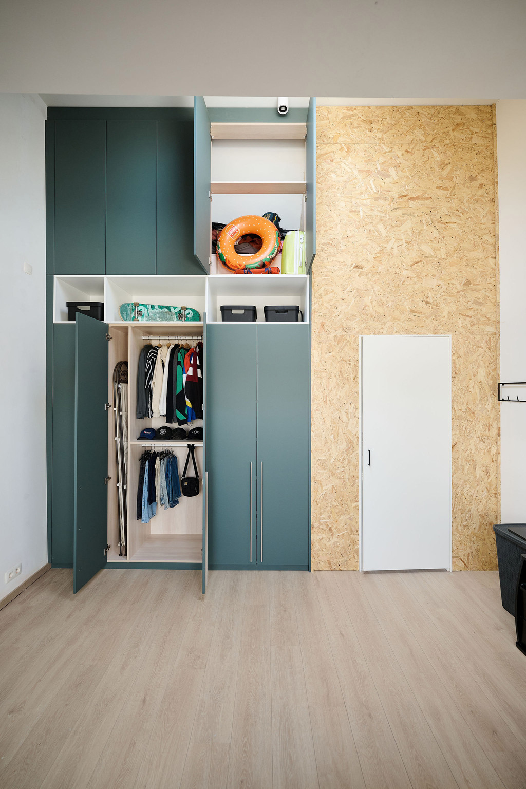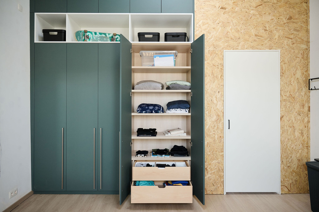 Ce prix comprend le séparateur de pièce dans sa totalité, composé de cette armoire ainsi que celle dans la chambre de fille.