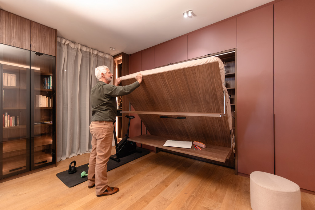 Un lit escamotable intégré dans une armoire sur mesure en est un excellent exemple : une seule intervention qui équilibre habitat, sommeil et circulation. Rien de fortuit, mais le résultat d’une vision, d’une expérience et d’une grande précision. C’est toute la valeur ajoutée du travail d’un architecte d’intérieur.