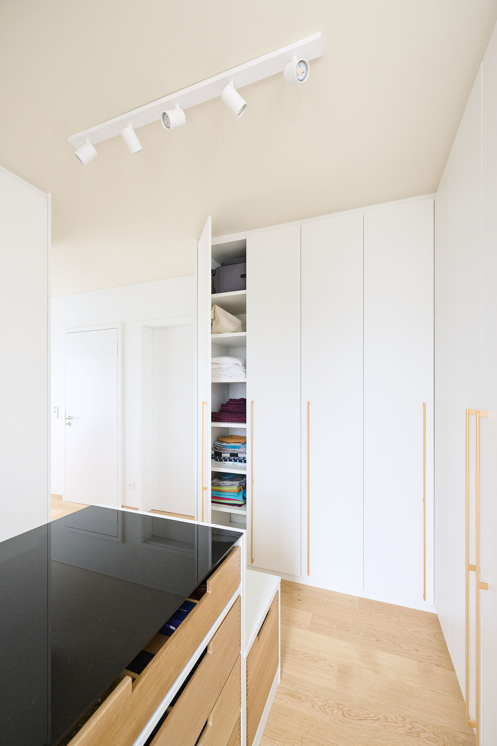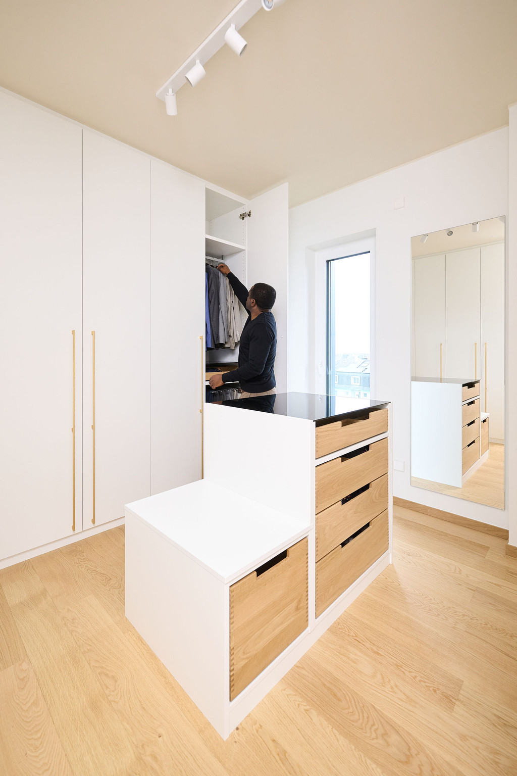 « Ce qui a rendu ce projet particulièrement intéressant pour moi, c’était la pose du dressing », ajoute Nicolas. « L’espace était spécialement prévu à cet effet dans cette nouvelle construction et présentait un haut niveau de finition. »