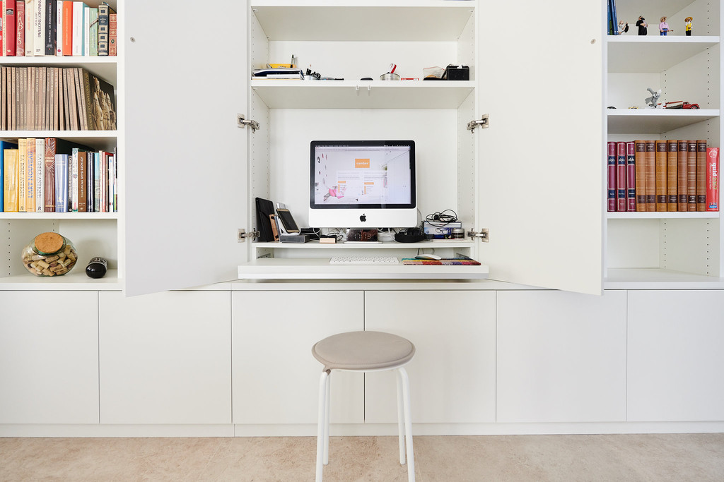 Aujourd’hui, grâce au sur mesure, un meuble peut en cacher un autre. Rien que ça ! En effet, on peut tout à fait imaginer unbureauingénieusement caché dans unmeuble TVou une commode. Mais encore, unebibliothèquequi accueille un bureau pour un espace multifonctionnel !