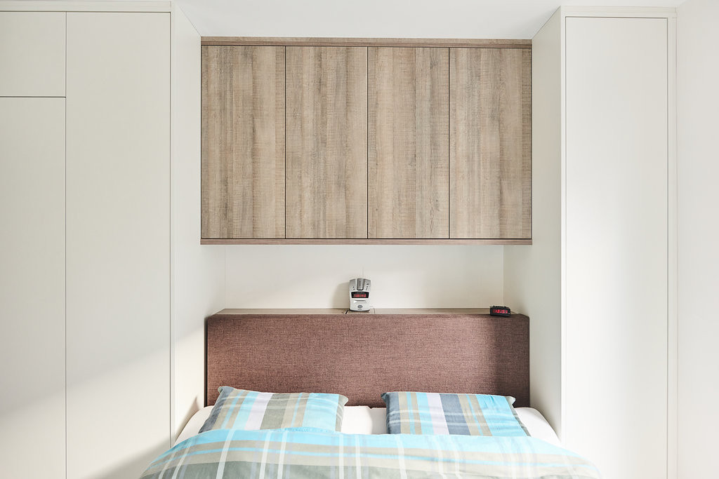 Pour utiliser tout l’espace dans votre chambre à coucher, vous pouvez aussi opter pour des rangements en tête de lit.