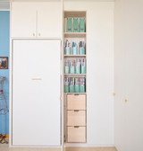 L’architecte d’intérieur de Camber, Nikki, a conçu une armoire multifonction sur mesure qui répond parfaitement aux besoins de cette grande famille. La chambre d’appoint sert à la fois d’espace hobby, de rangement et de chambre d’amis.